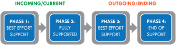 When an OS product is on the DRC supported product list, DRC performs application testing for all major versions of the product publicly supported by the product vendor and for all minor versions of the product when DRC deems testing is necessary. Any new version of a supported OS product will be Fully Supported by all DRC applications within 90 days of public availability of the version of the OS product, or by the next planned common or client-specific release date of the DRC application, whichever duration is greater. Phase